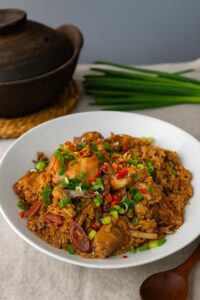2. 预热完成后,将腌制好的鸡胸肉放入内锅。盖上气炸炉盖,开始煎烤。